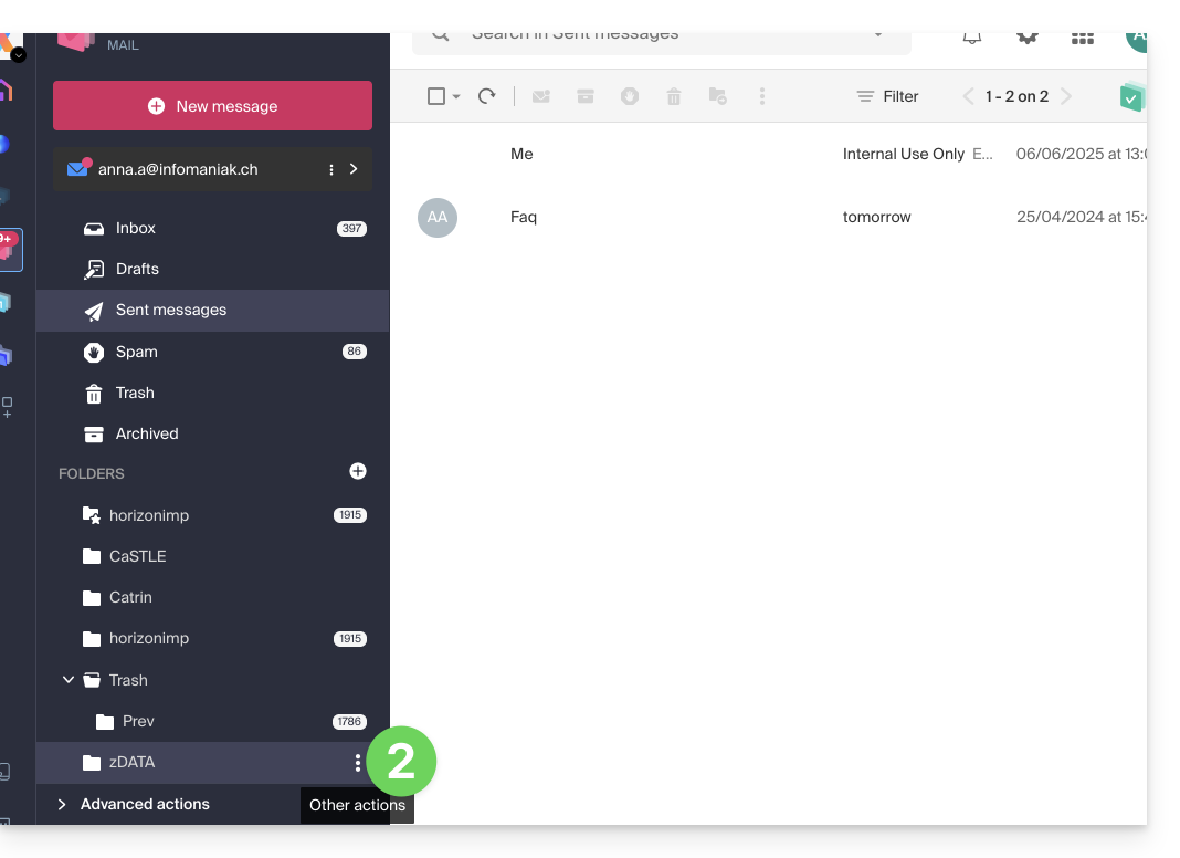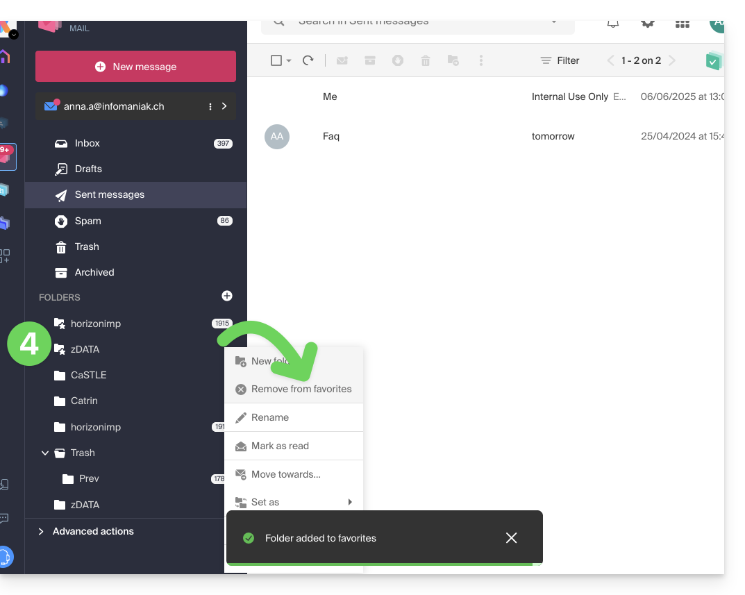 Wissensdatenbank Verwalten der Favoriten-Ordner in der Infomaniak Webmail-App