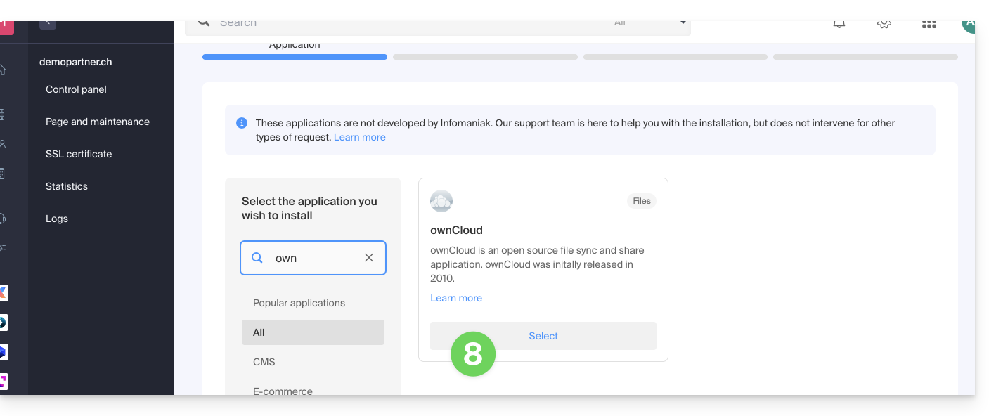 - Unlike other hosts, Infomaniak allows the use of ownCloud on its hosting: