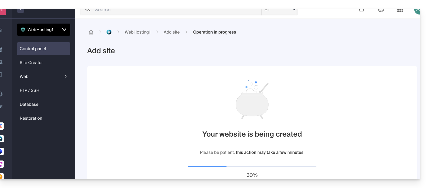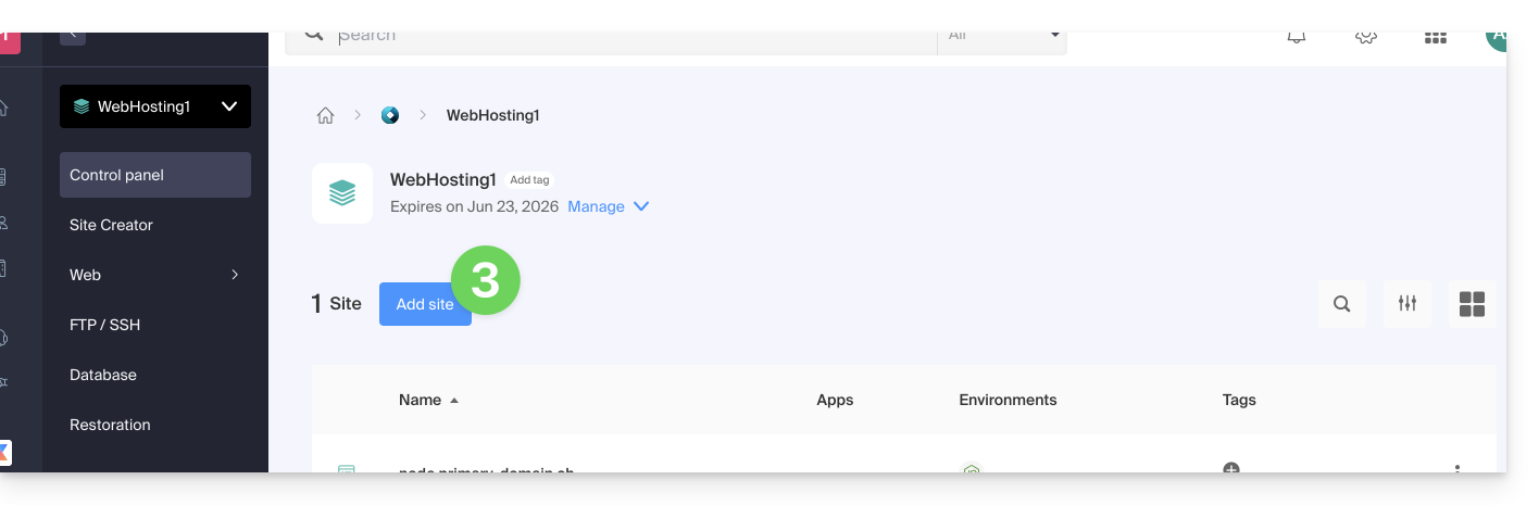 - If a blank site is already present on the hosting, click the button as in the image below and skip directly to step 8: