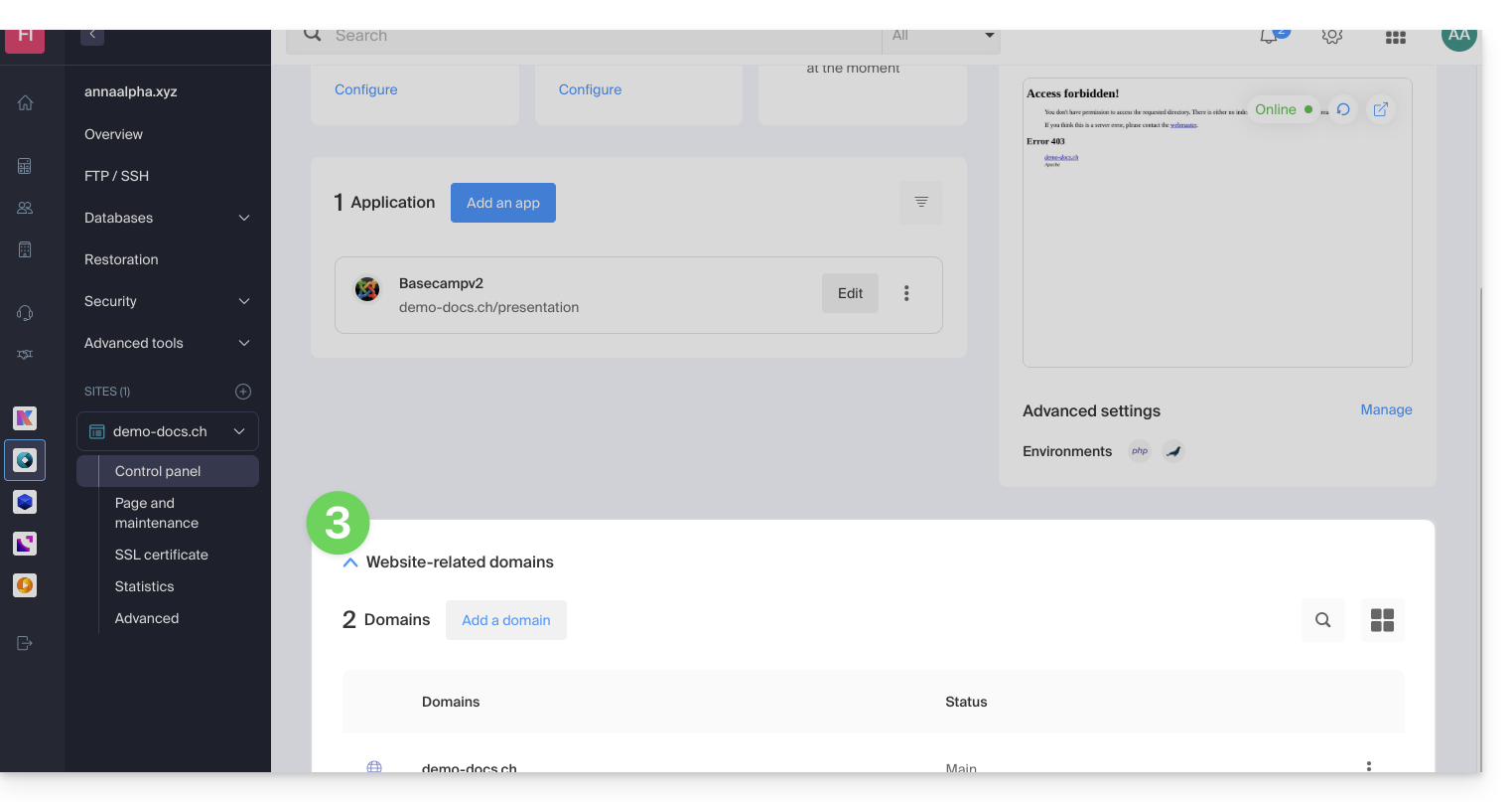 - Prenez connaissance de cet autre guide (particulièrement ses Prérequis) pour lier le nouveau nom de domaine à votre site: