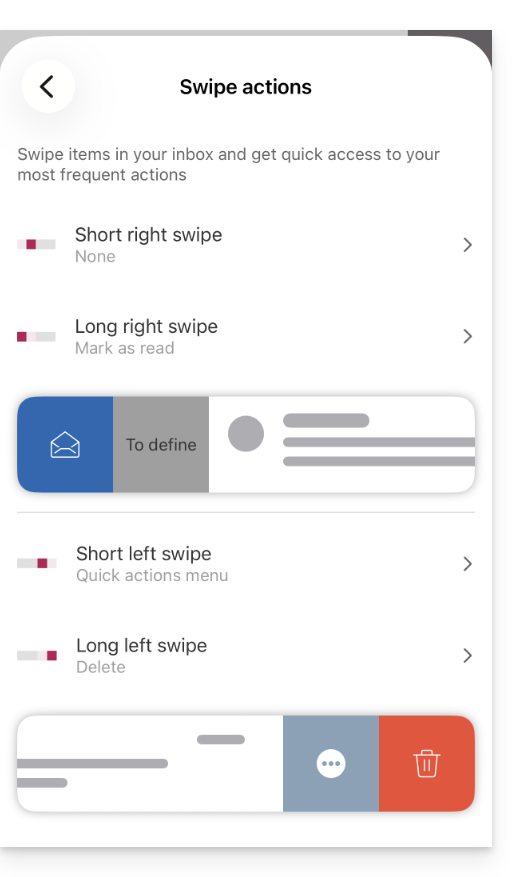 Questa sezione consente di scegliere le icone che devono essere visualizzate quando si passa il mouse su un'e-mail all'interno di un elenco (ad esempio, e-mail della casella di posta in arrivo):