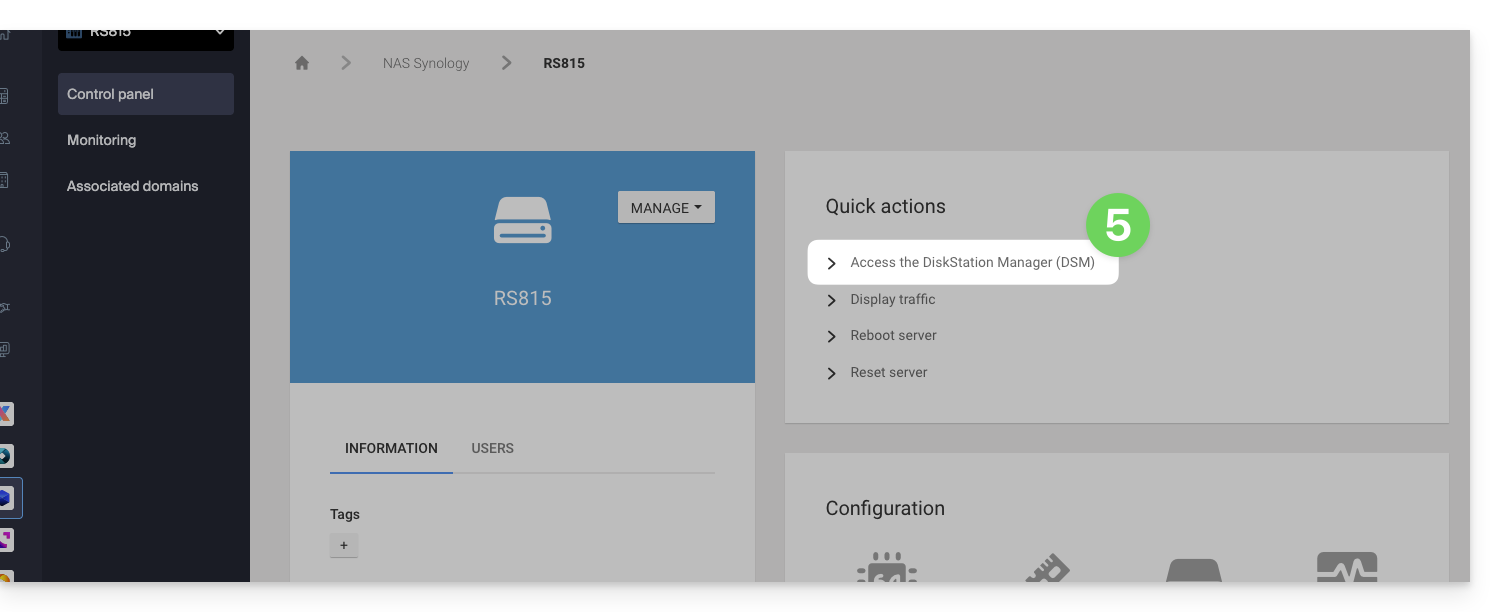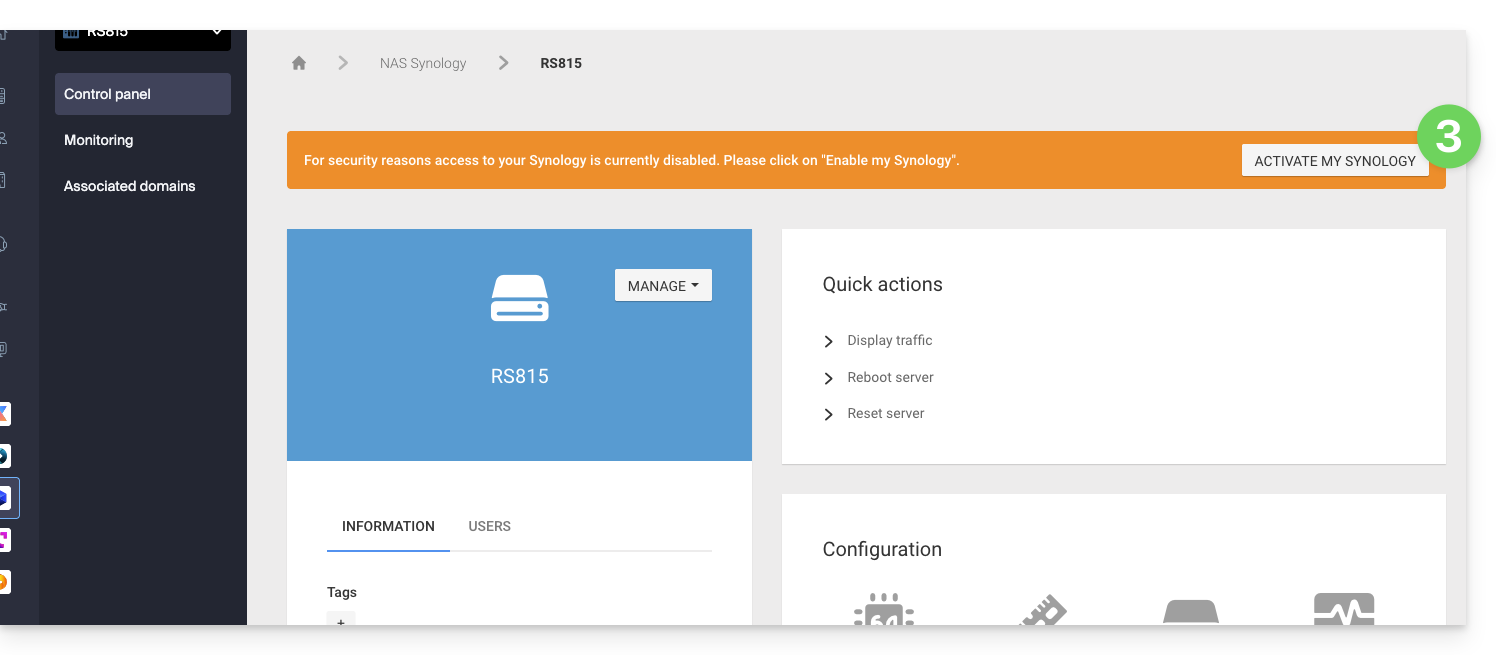 Um ein Synology NAS von Infomaniak zu aktivieren und zu verwalten: