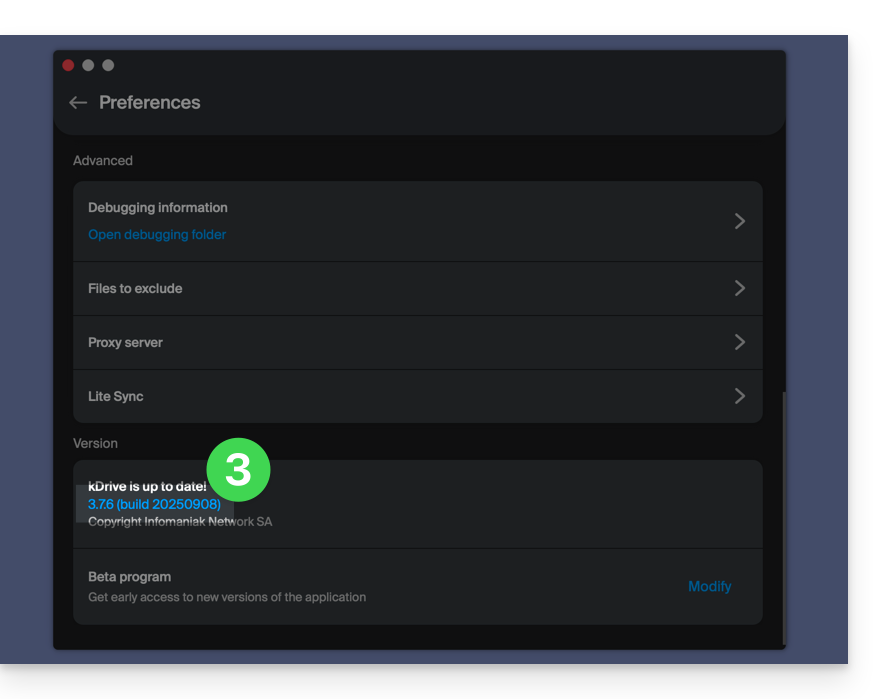 Um die Versionsnummer der kDrive-Anwendung zu identifizieren: