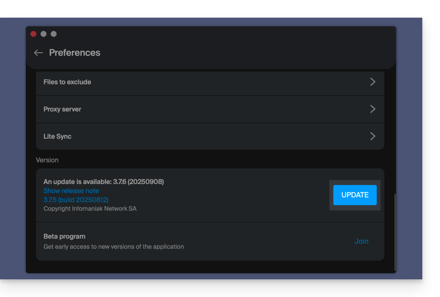 Aktualisieren Sie die kDrive-App auf Ihrem Computer