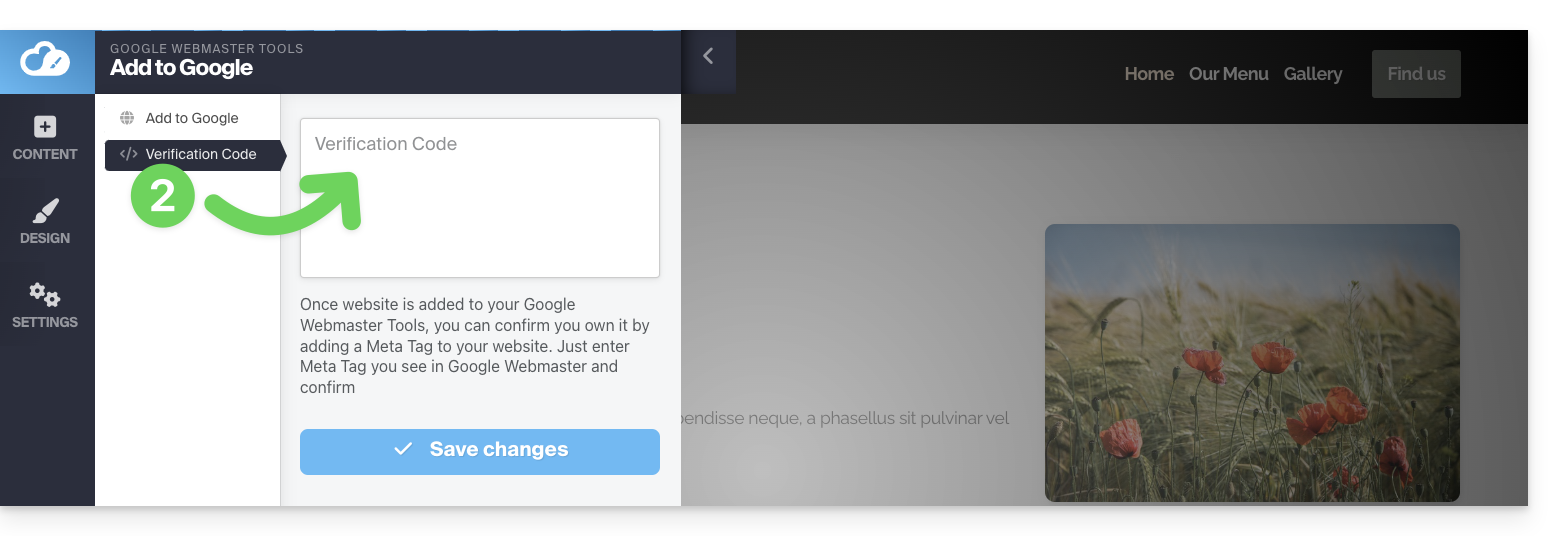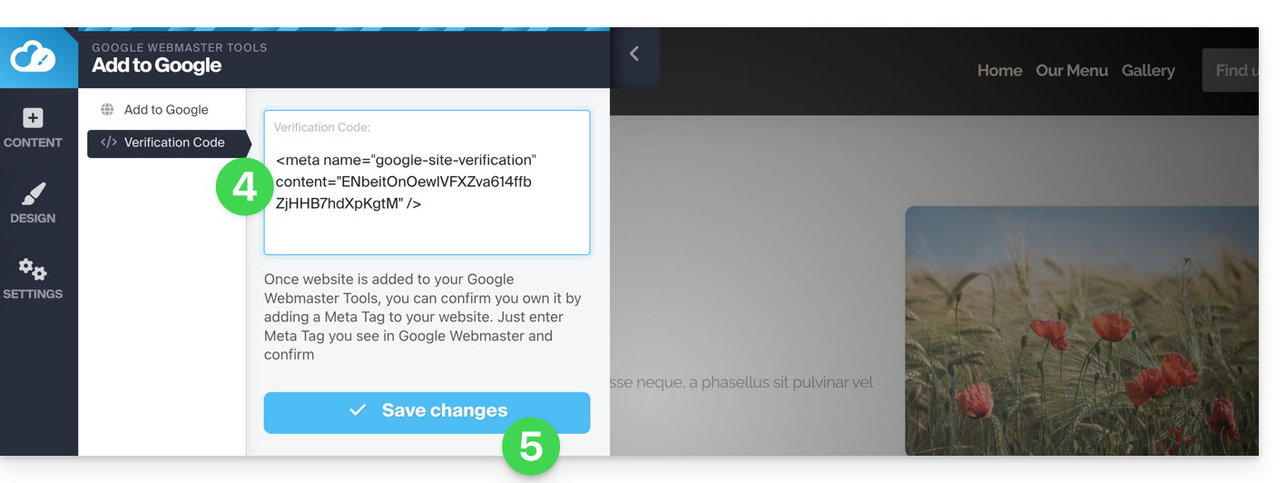 - Sie können dort den Verifizierungscode einfügen, der von der Google Search Console bereitgestellt wird, falls Sie die einfache Methode wählen (siehe unten):