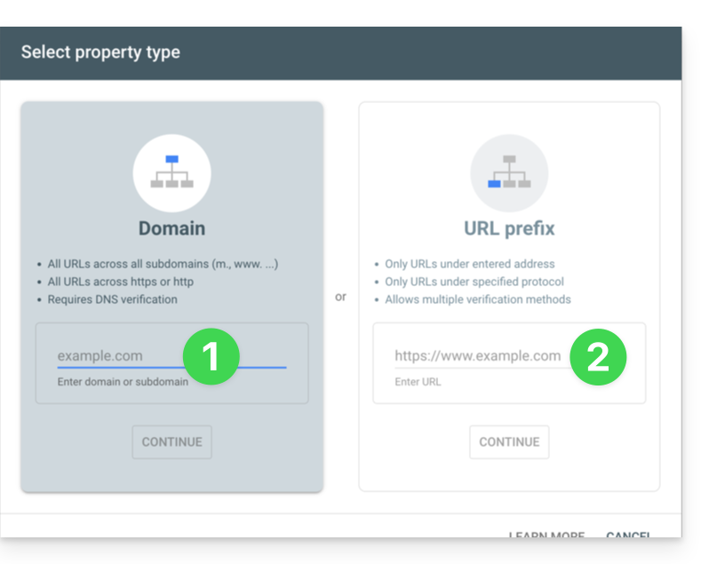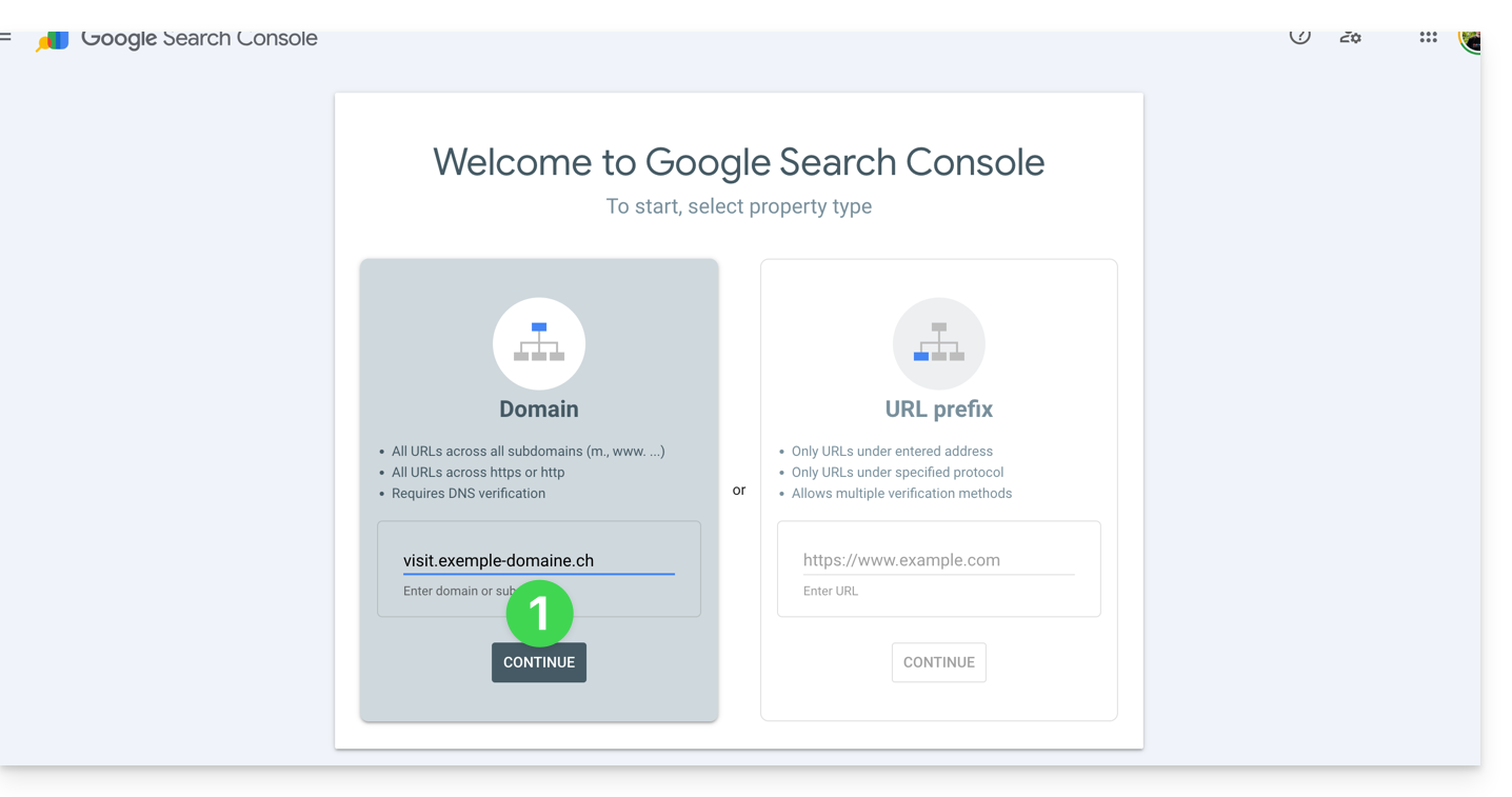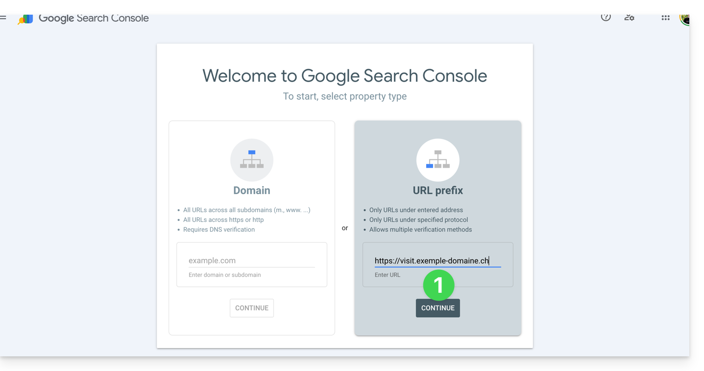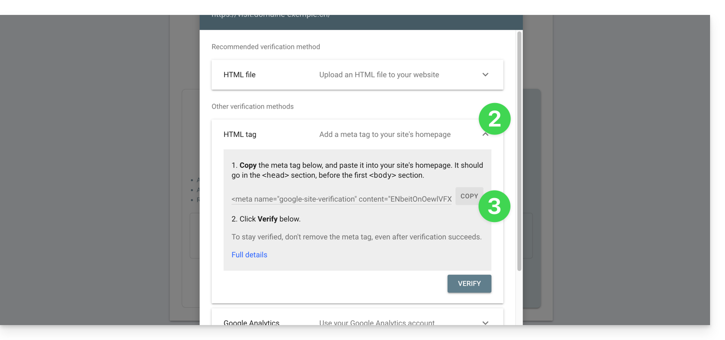 Wenn Sie Ihre Website zum Google-Tool hinzufügen möchten und auf die Schaltfläche im obigen Schritt 1 klicken, werden Ihnen 2 Vorschläge unterbreitet: