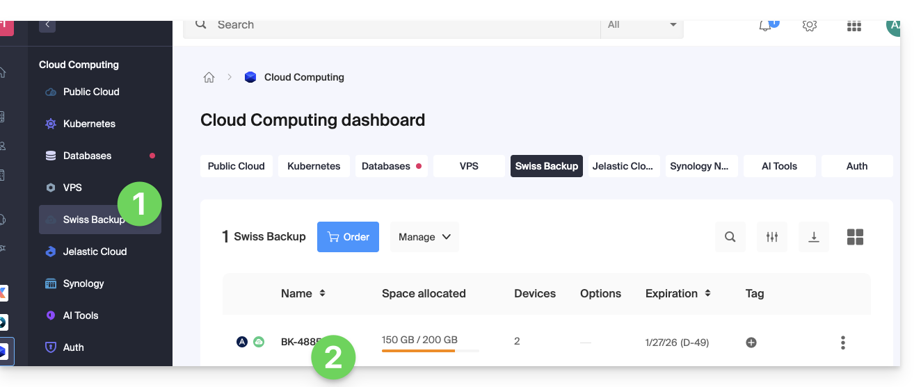 1. Klicken Sie hier, um auf die Verwaltung Ihres Produkts im Infomaniak Manager (Hilfe benötigt?) zuzugreifen.