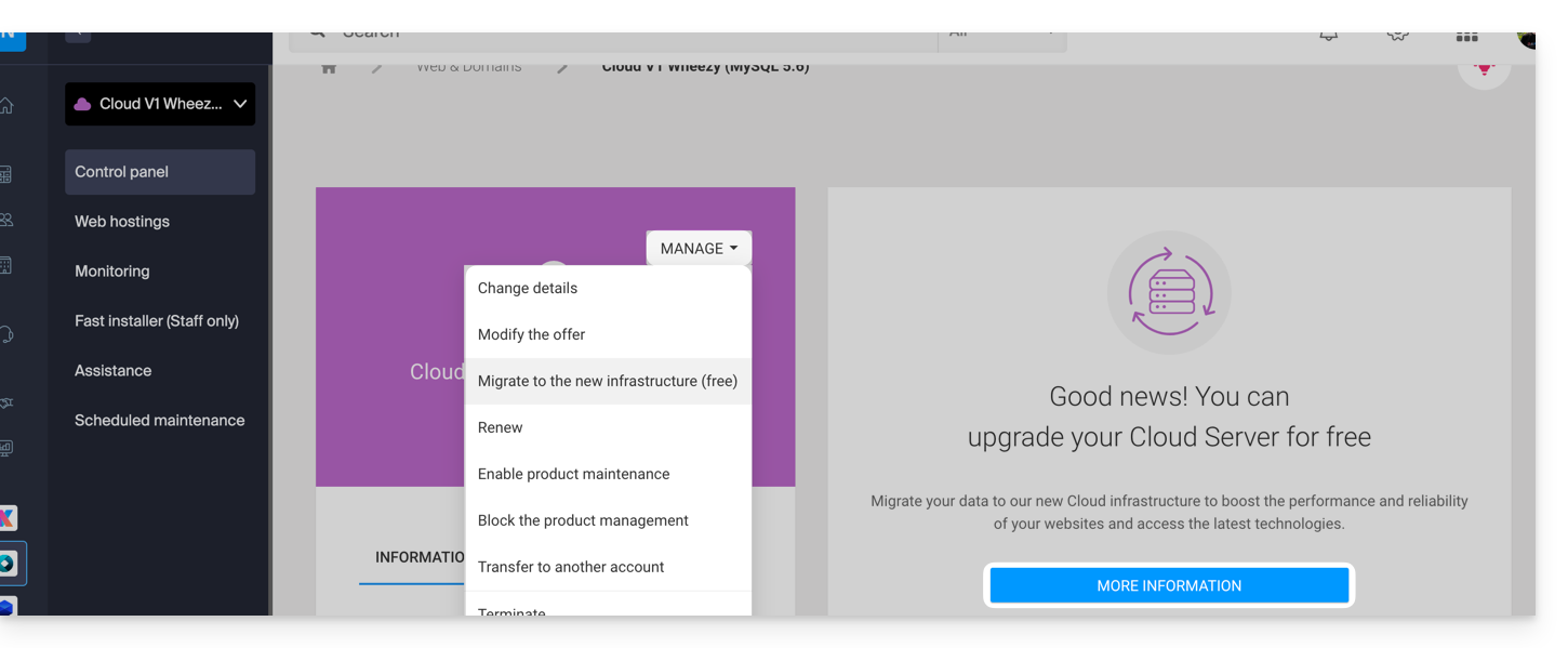 - Infomaniak stellt einen Cloud-Server der neuesten Generation mit denselben Merkmalen wie der aktuelle, zum selben Preis und derselben Vertragslaufzeit zur Verfügung.
