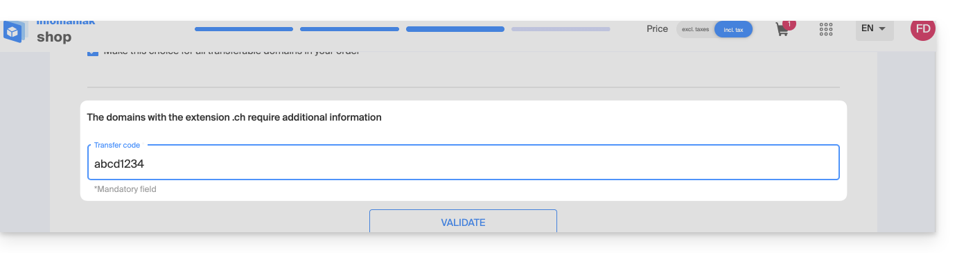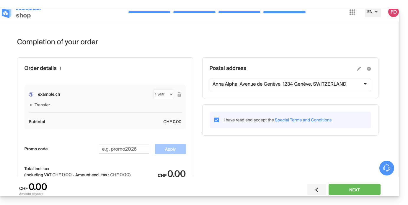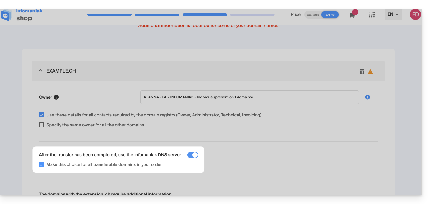 - Übertragen Sie einen weiteren Domainnamen auf Infomaniak