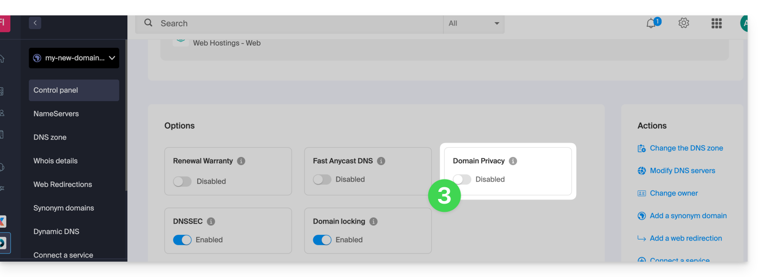 - Die DNS-Zone des Domainnamens muss bei Infomaniak verwaltet werden. Falls erforderlich, übertragen Sie Ihre Domains zu Infomaniak.