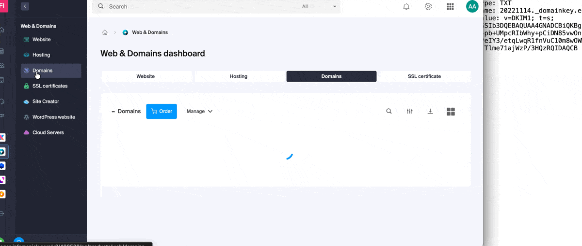 - DKIM anzeigen, um es zu kopieren und einzufügen. Beispiel: