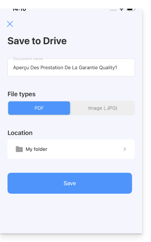 zipzum Herunterladen auf Ihr Gerät zu erstellen. - Wählen Sie Alles in kDrive speichern, um das kDrive (aus denen, die Ihnen von Ihrer Organisation zugeordnet sind) und den gewünschten Speicherort darauf auszuwählen, um die Dateien zu speichern.