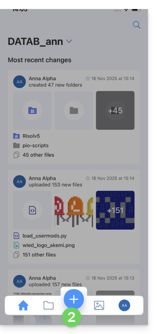 - Drücken Sie oben links, um zum vorherigen Menü zurückzukehren, und drücken Sie auf Synchronisieren, um die Dateien auf kDrive zu erstellen: