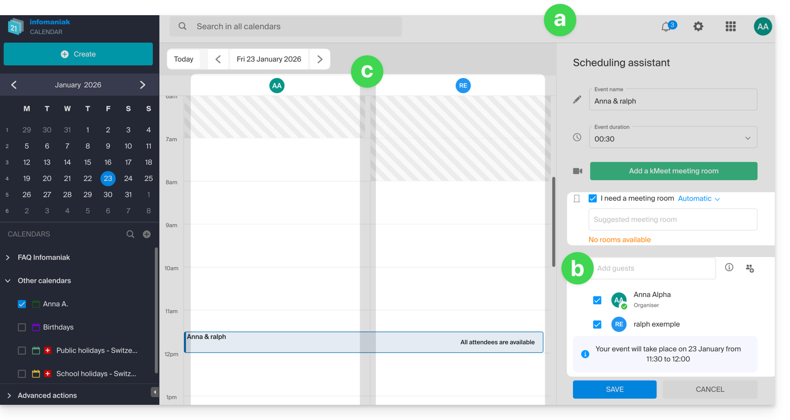- Sehen Sie sich diesen anderen Leitfaden an, wenn Sie nur einen Infomaniak-Kalender in schreibgeschütztem Modus in Google Kalender (Web-App & mobil) anzeigen möchten.