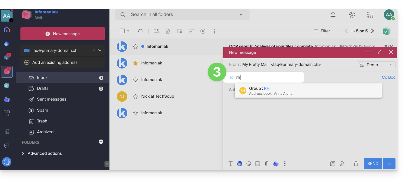 - Eine E-Mail-Adresse kann (in der App Mail von Infomaniak) ohne Passwort angesehen werden: Es reicht aus, Ihr Konto zu autorisieren oder eine Bekannte als Benutzer der E-Mail-Adresse einzuladen.