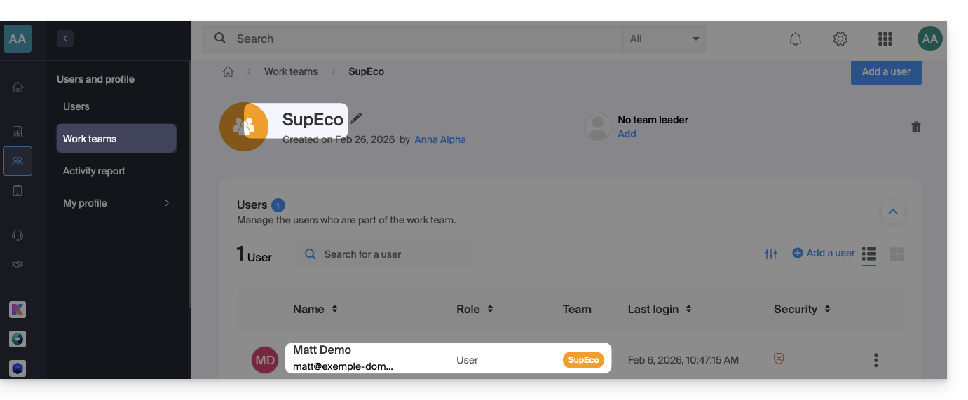 - Fügen Sie den neuen Benutzer (bestehend in der Organisation oder nicht) wie in diesem anderen Leitfaden beschrieben hinzu: