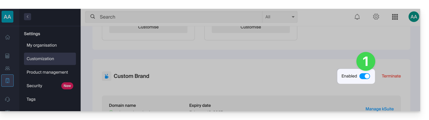 Custom Brand ist ein Service, der bereits in kSuite Enterprise enthalten ist.