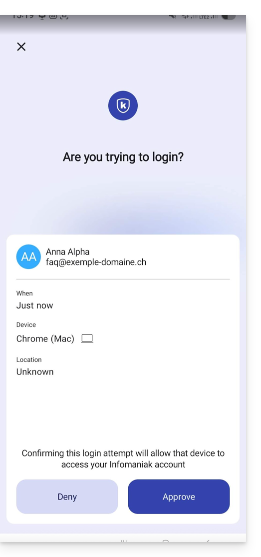 Benachrichtigung bei einer Anmeldeanforderung über die Infomaniak-Apps erhalten