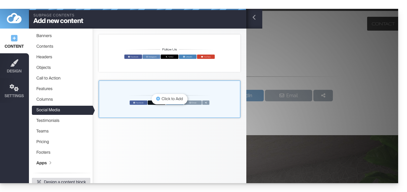 - Klicken Sie auf die Schaltfläche Inhalt im linken Seitenmenü.