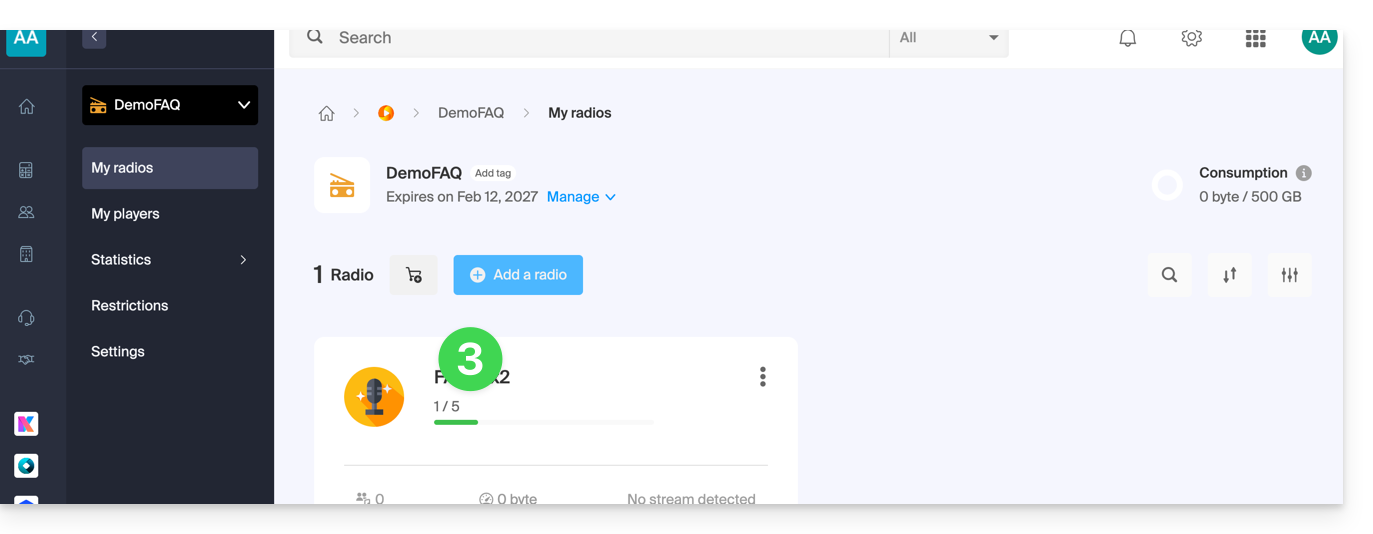 - Mindestens 1 Radio und 1 Audio-Stream hinzufügen.