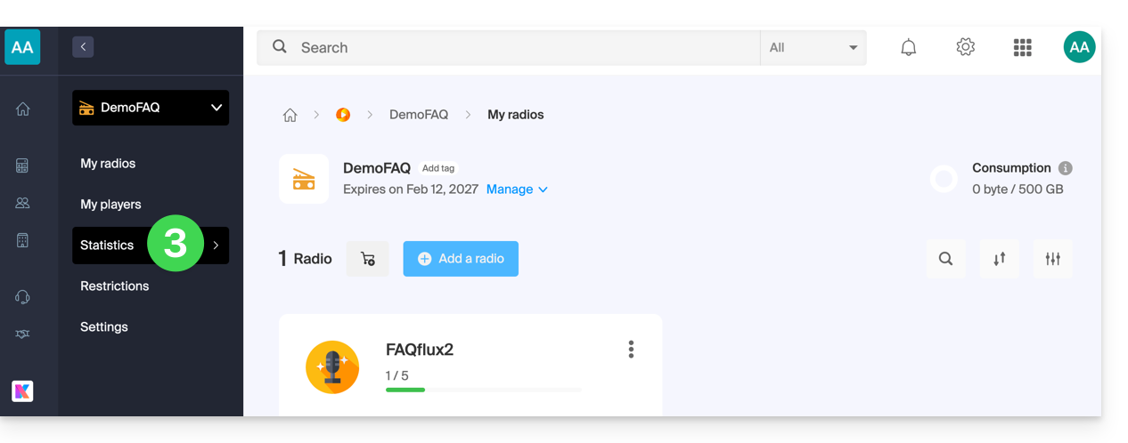 - Auto DJ stützt sich auf die in Ihrem Infomaniak-AOD-Bereich (Audio on Demand) gespeicherten Dateien, um einen linearen Stream zu erstellen.
