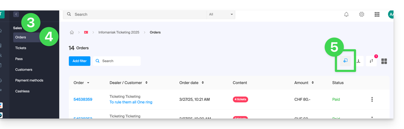 Dieser Leitfaden erklärt, wie Sie Bestellungen verwalten und Tickets am mobilen Schalter (im Rahmen des Infomaniak-Ticketing) drucken.