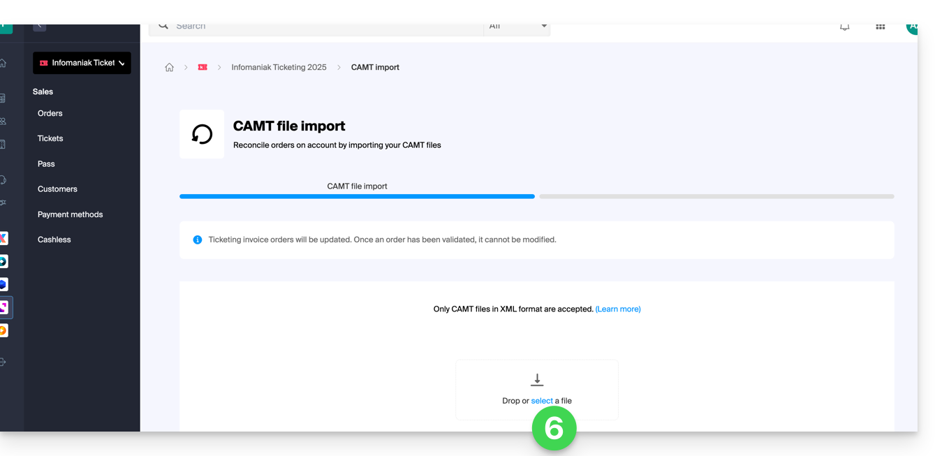 Dieser Leitfaden erklärt, wie Sie die CAMT-Dateien Ihrer Bank verwenden, um automatisch die per Rechnung bezahlten Bestellungen (im Rahmen des Infomaniak-Ticketingsystems) zu validieren.