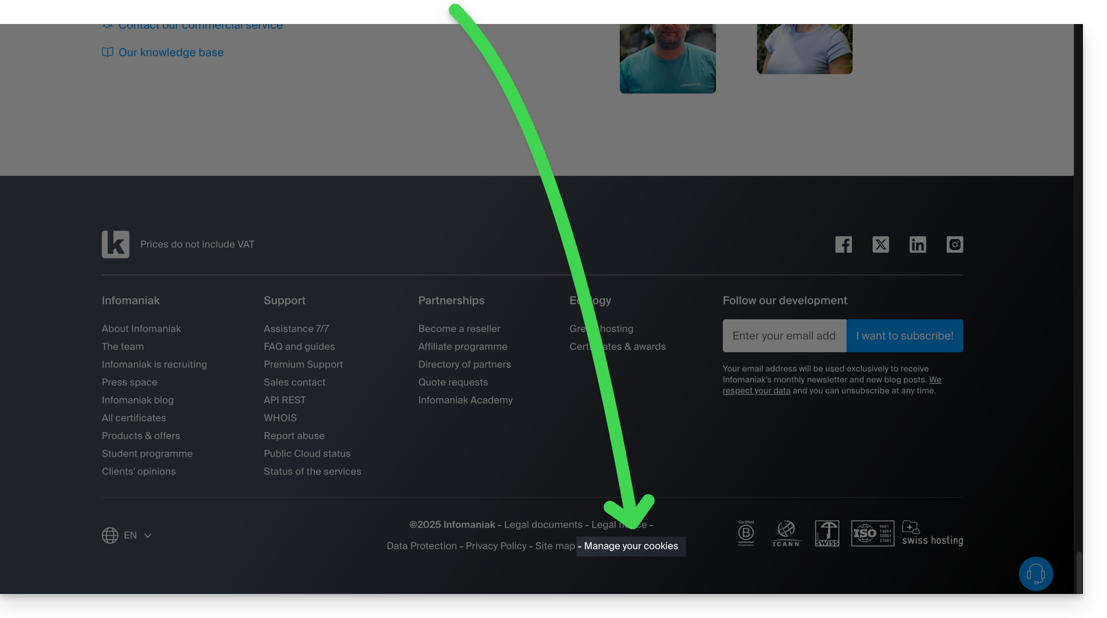 - Klicken Sie hier, um die Verwaltung Ihrer Partnerschaften im Infomaniak Manager zu erreichen (Brauchen Sie Hilfe?).