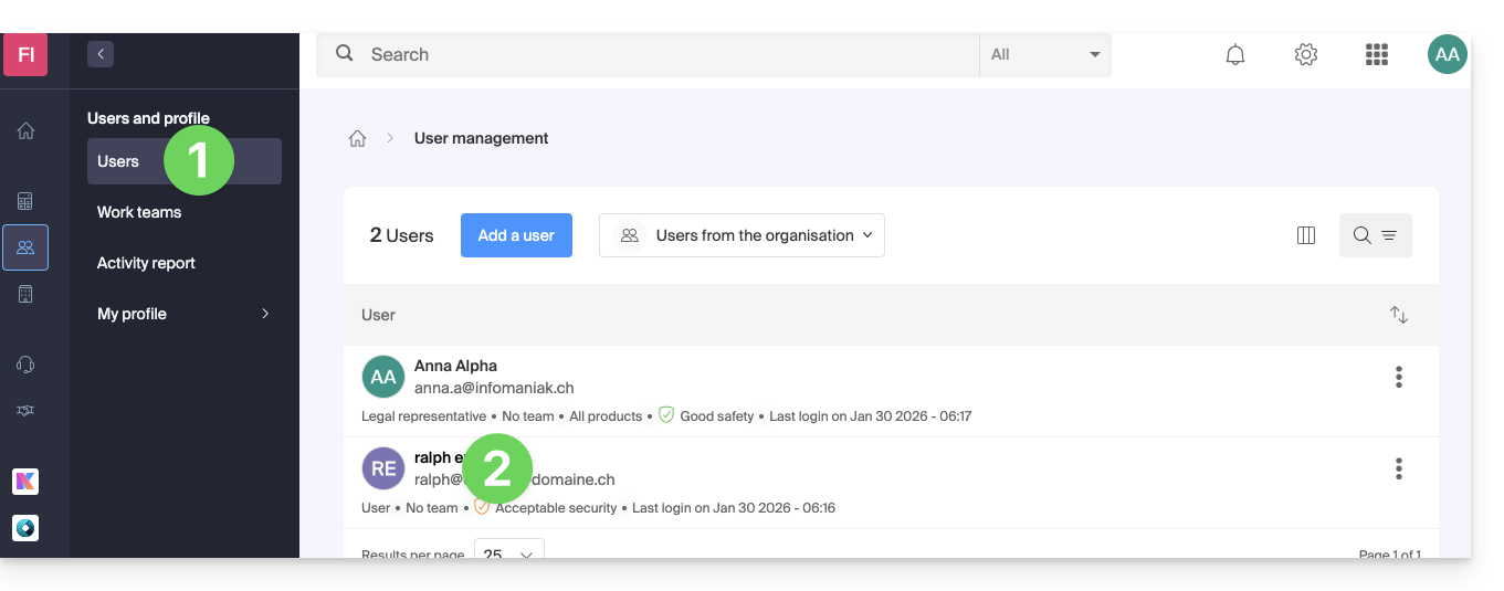 Sie finden alle Informationen in Ihrem Infomaniak Manager: