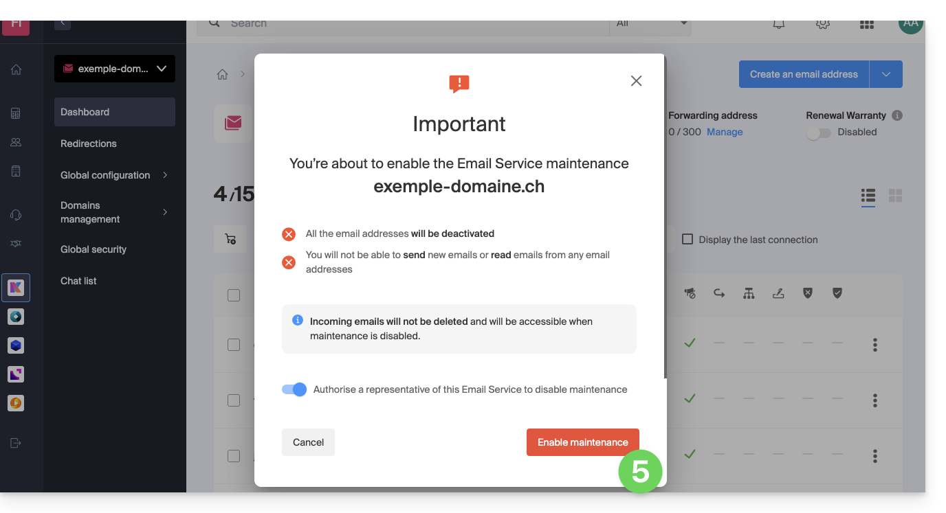 - Klicken Sie hier, um auf die Verwaltung Ihres Mail-Service im Infomaniak Manager zuzugreifen (Hilfe benötigt?).