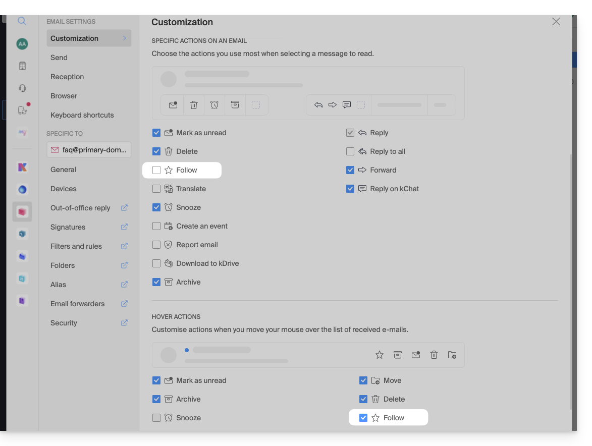 Benutzerdefinierte Vorlagen können ab der Erstellung einer neuen E-Mail-Adresse in Ihrem Mail-Service angewendet werden, z. B. oder in Masse auf alle Adressen Ihrer Domain. Mehr erfahren