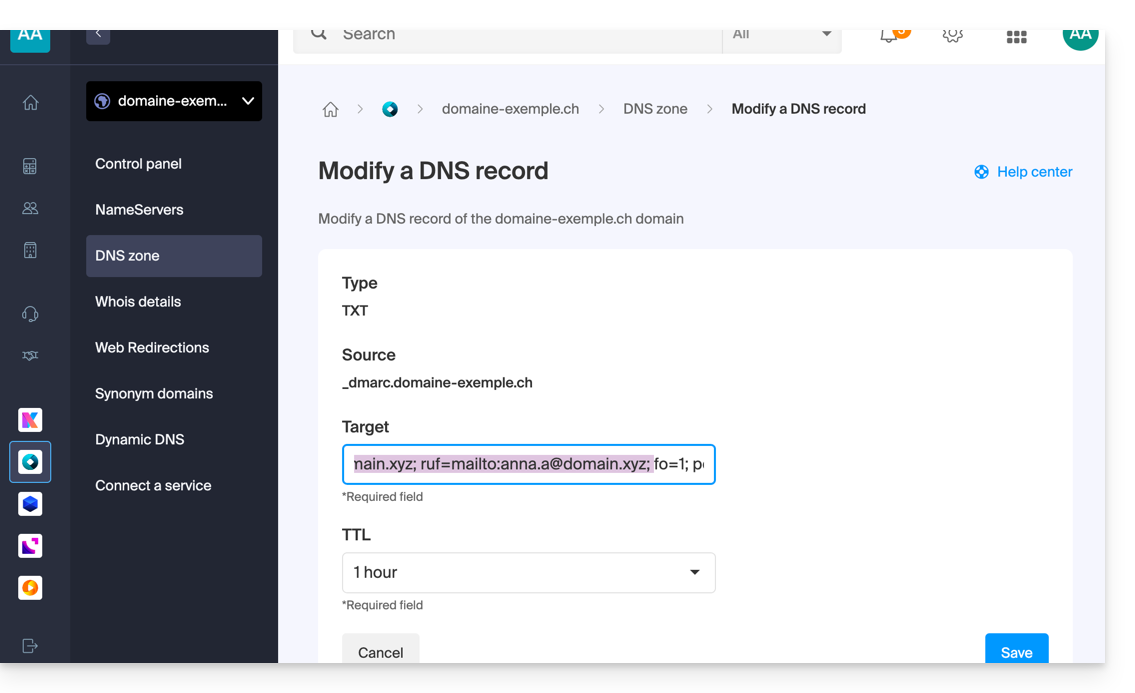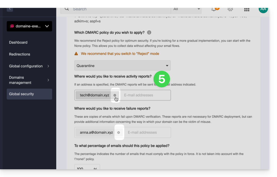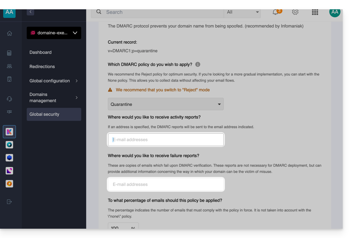 This guide is about the DMARC policy and the optional security reports sent by email that can be activated or deactivated upon request.