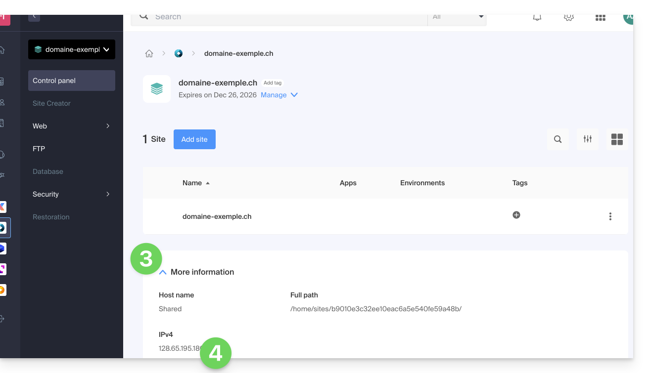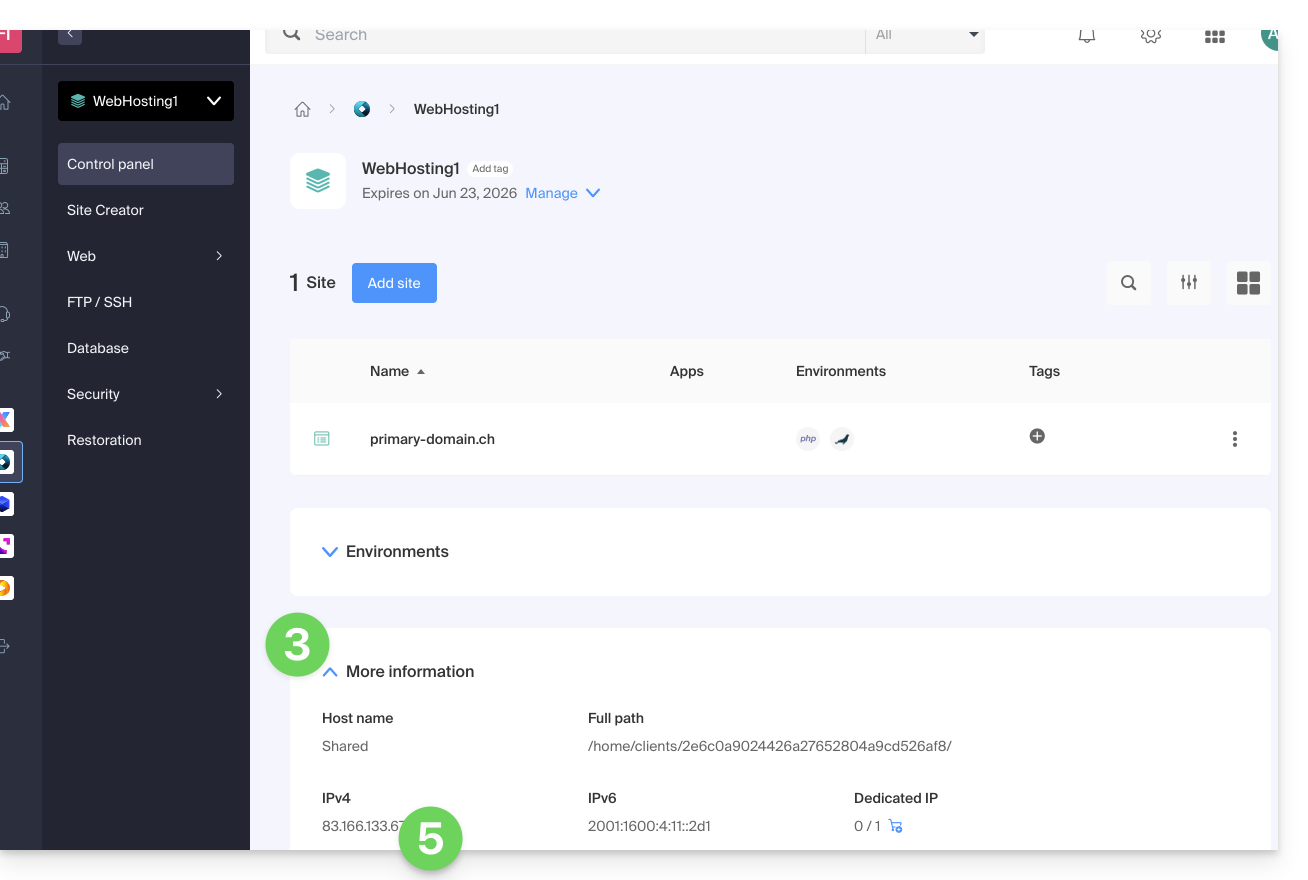 This guide explains how to display the IP address of a site on your Web Hosting.