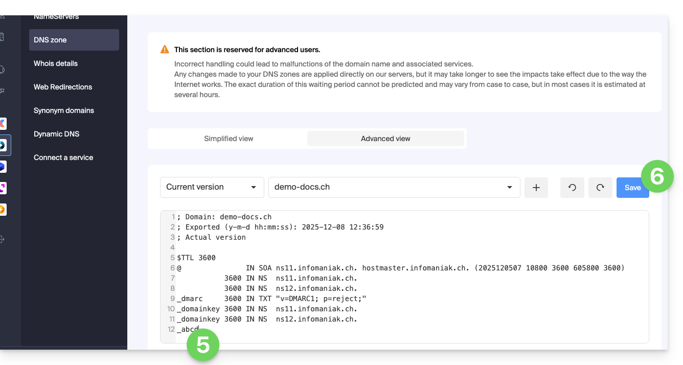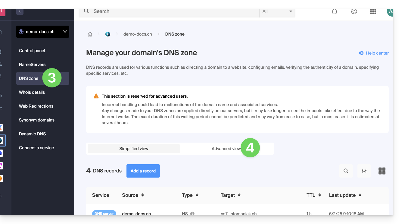 Modify the DNS zone (advanced mode) of a domain managed by Infomaniak