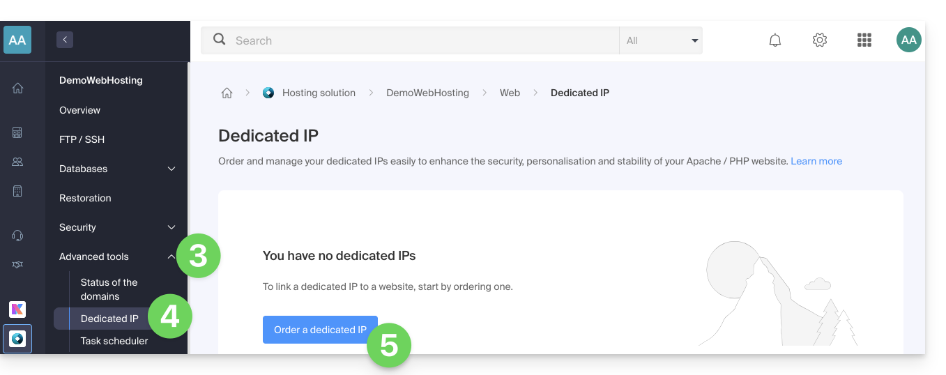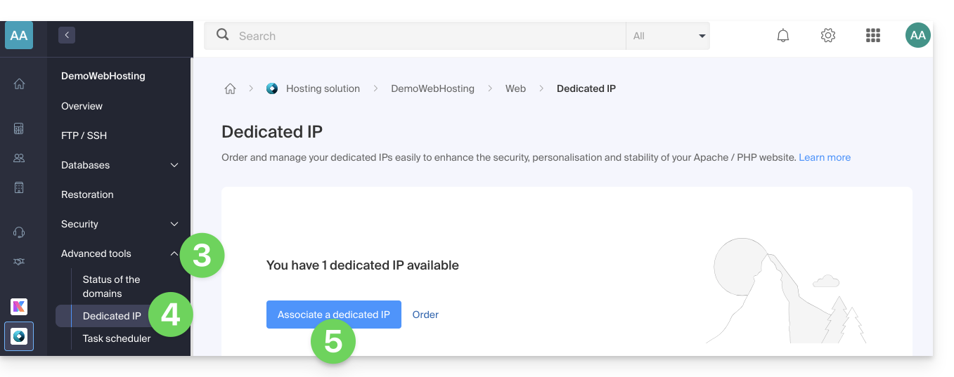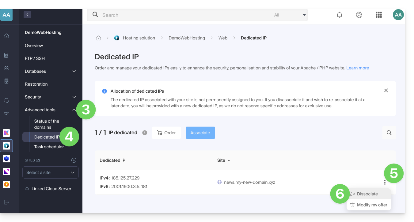 Manage dedicated IPs on hosting