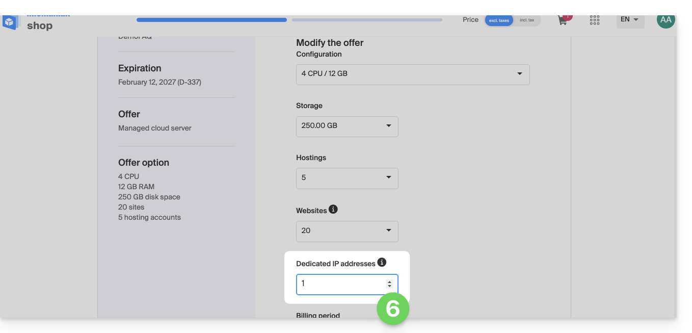 Once the IP is ordered and paid for, be aware of the prerequisites below as switching to a dedicated IP address for a website can cause temporary disruption, especially in the presence of a Let's Encrypt SSL certificate.