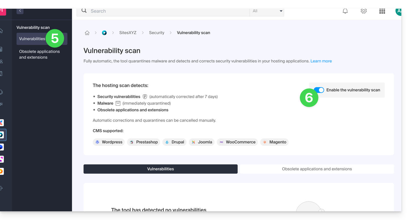 This guide explains how to disable (or re-enable) the vulnerability detection tool, a free and complementary to the antivirus protection that automatically protects Web Hostings against malware and security vulnerabilities.