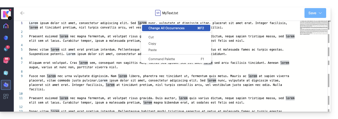 - Right-click on the selection and choose the menu item “Edit all occurrences”:
