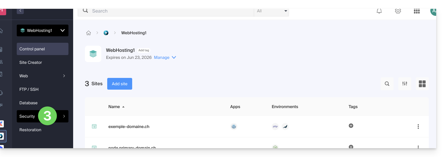 - Click here to access the management of your product on the Infomaniak Manager (need help?).