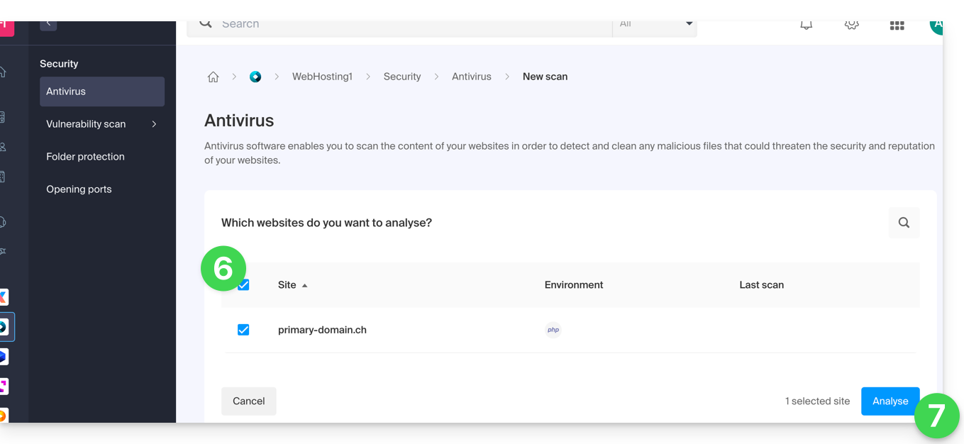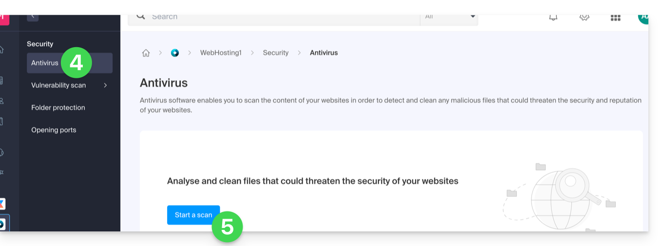 This guide explains how to start a content analysis of a Web Hosting to detect and clean files containing viruses and other malicious scripts that could threaten the security of websites.