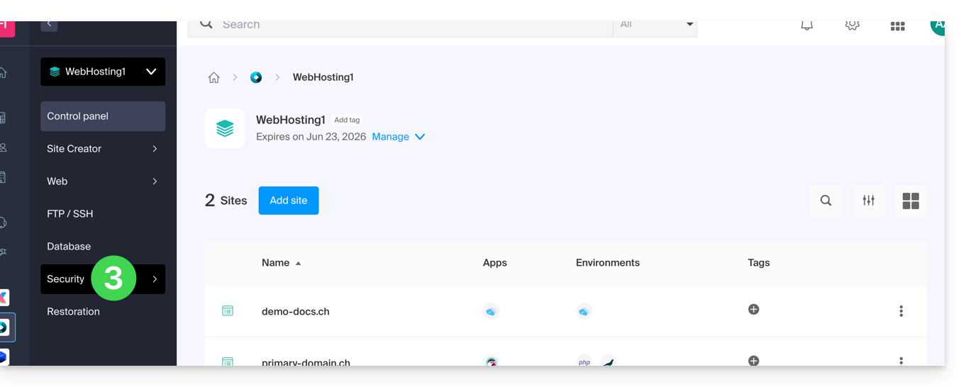 - Click here to access the management of your hosting on the Infomaniak Manager (need help?).