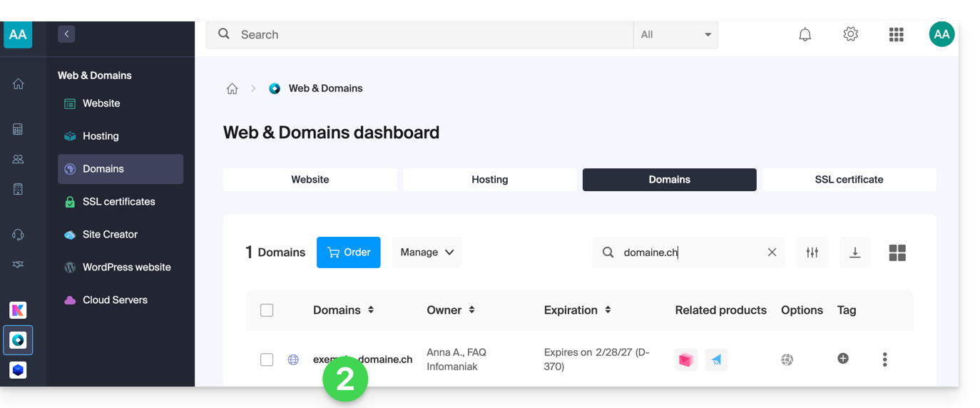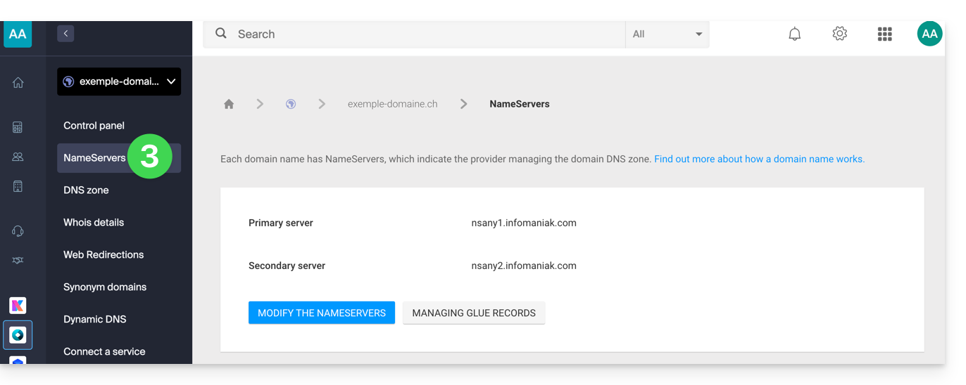 - Click here to access the management of your domain on the Infomaniak Manager (need help?).