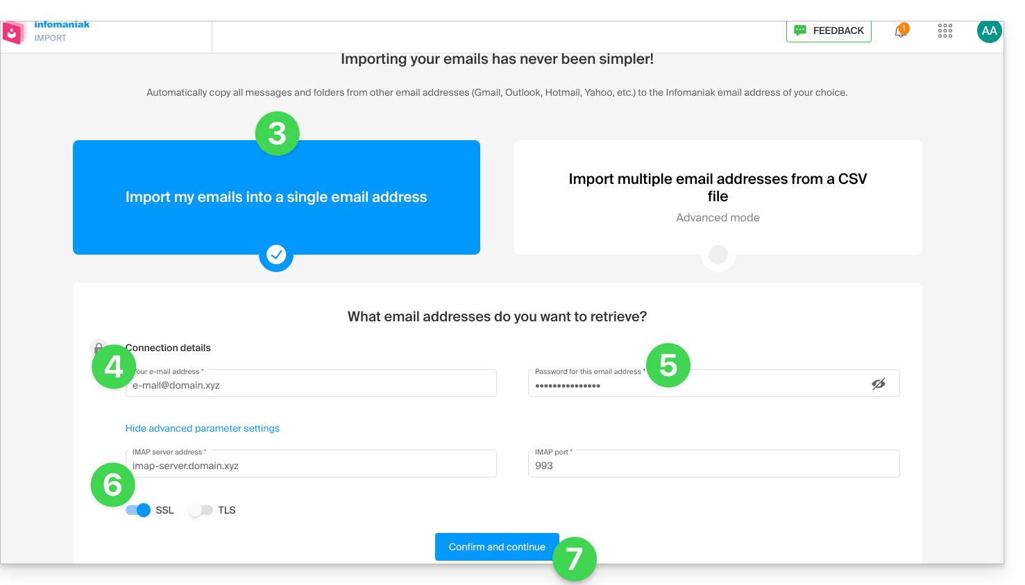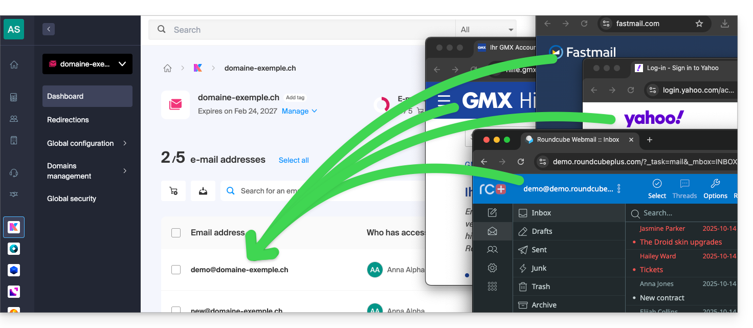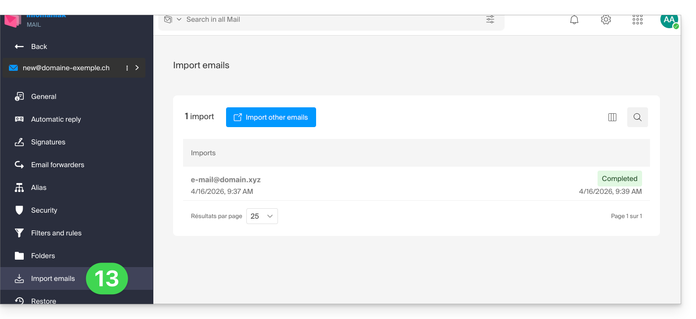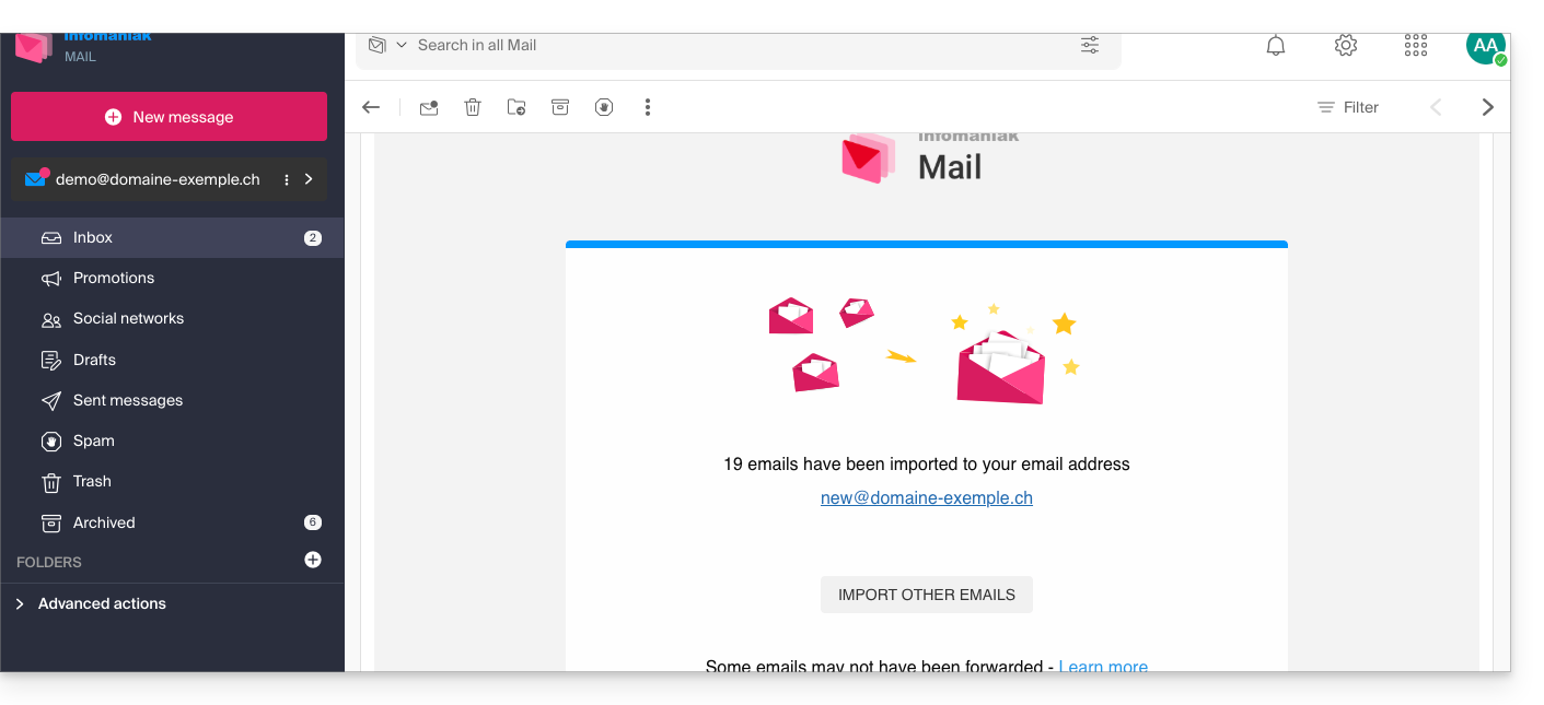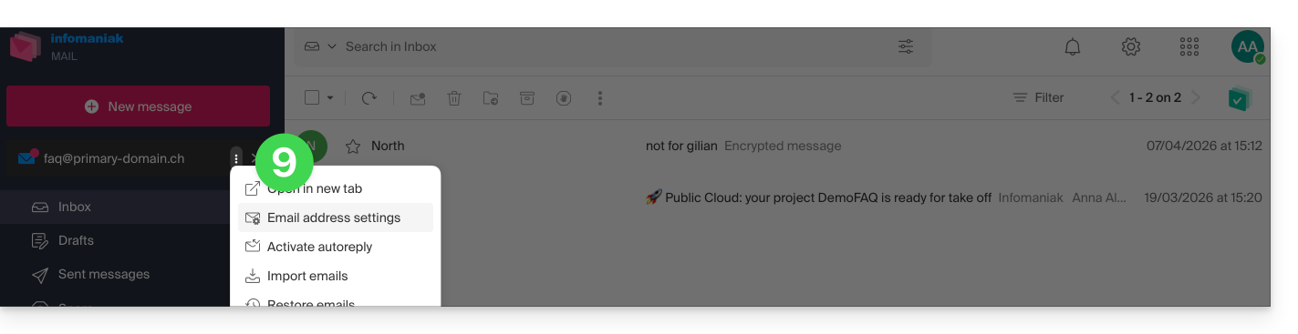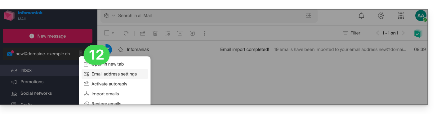- get a password so that a third-party user can add the address to their Infomaniak Web app Mail