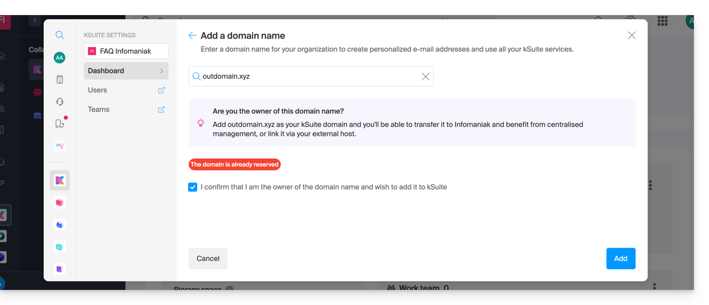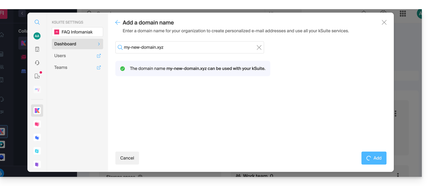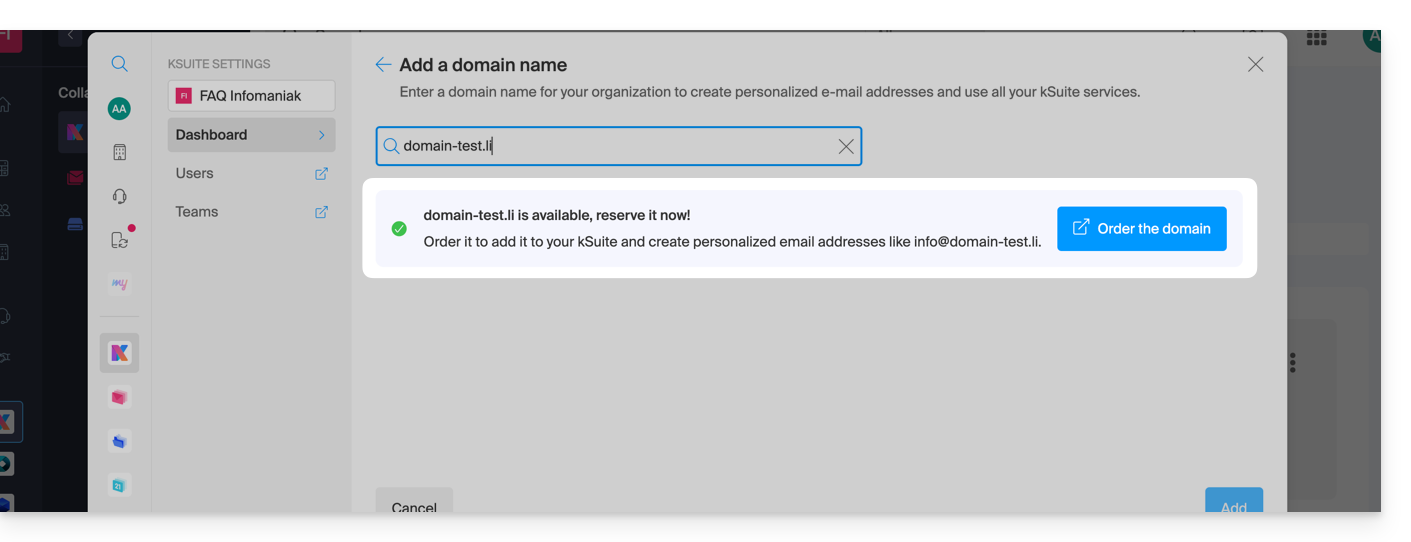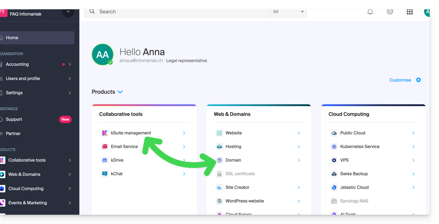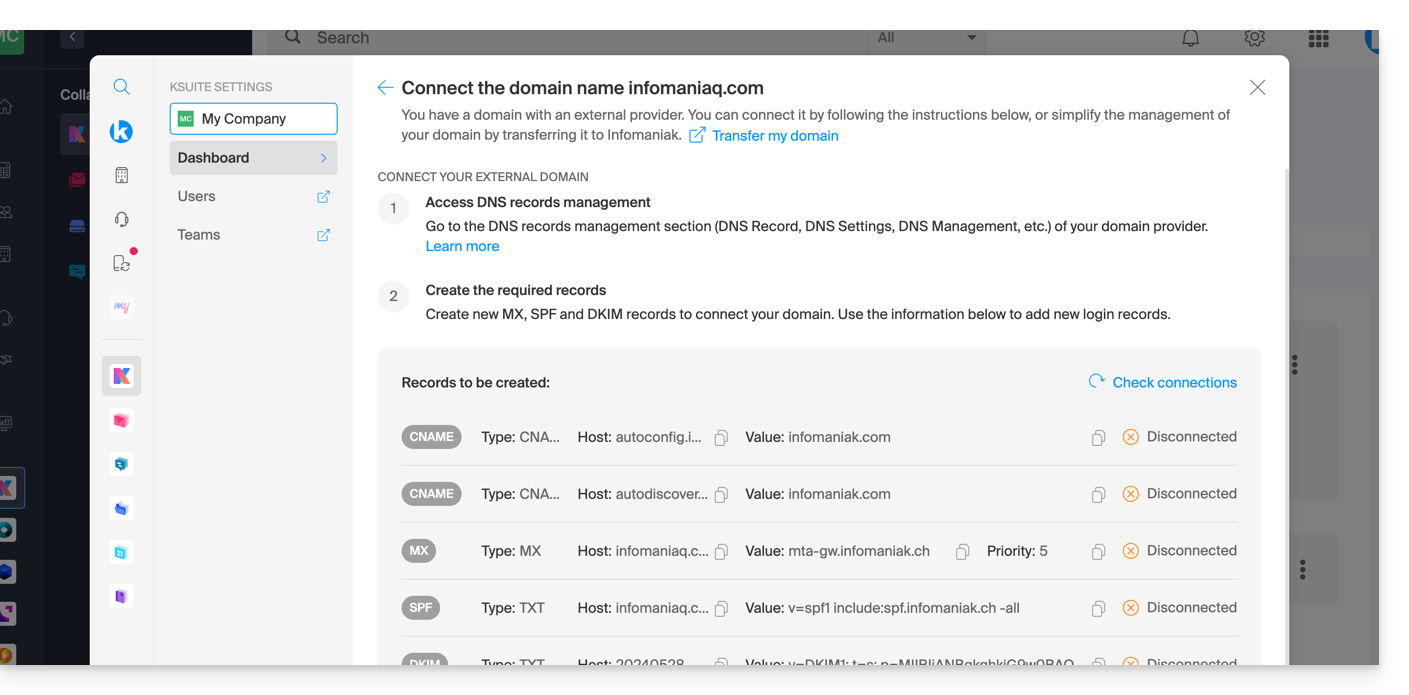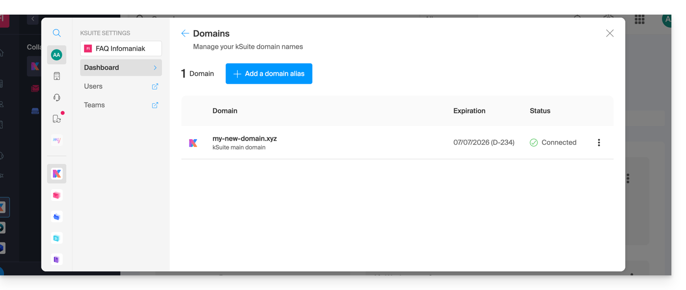 This guide explains how to link a domain name to the offer kSuite Infomaniak.