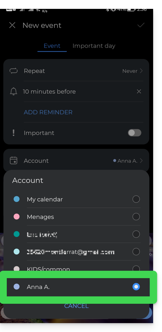 - Select your custom notification when adding a reminder to your event: