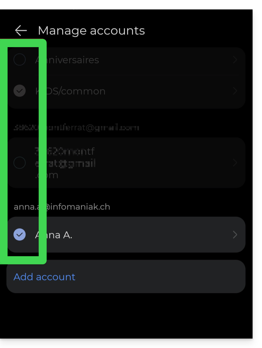 - Choose to synchronize another application than the Infomaniak Mail application: