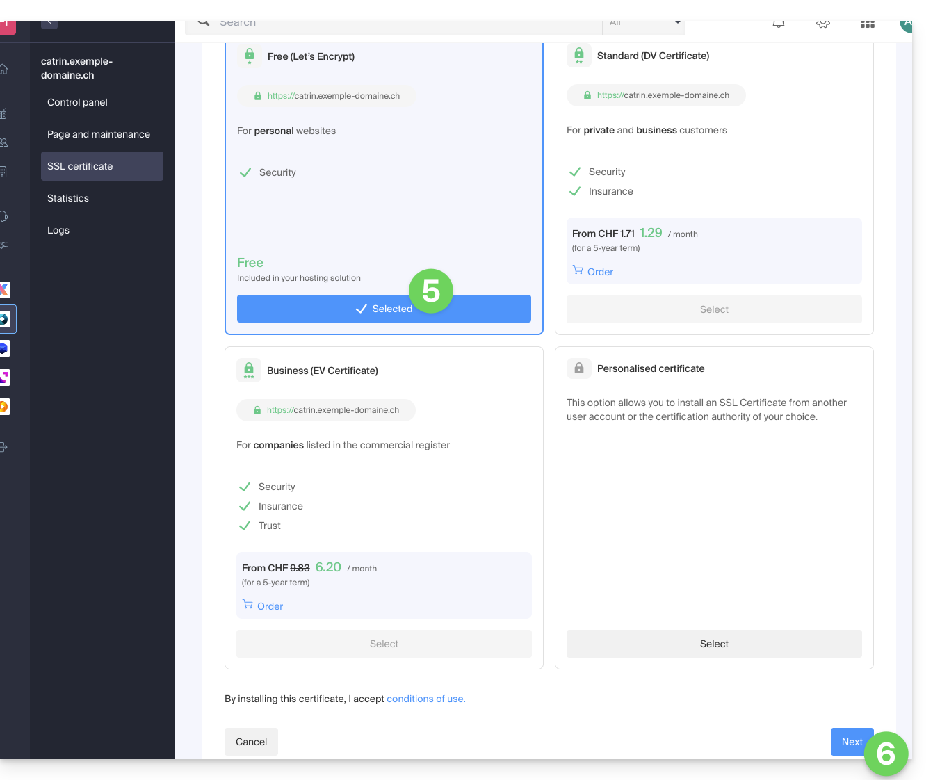 Learn about the different certificates available on the Infomaniak site.