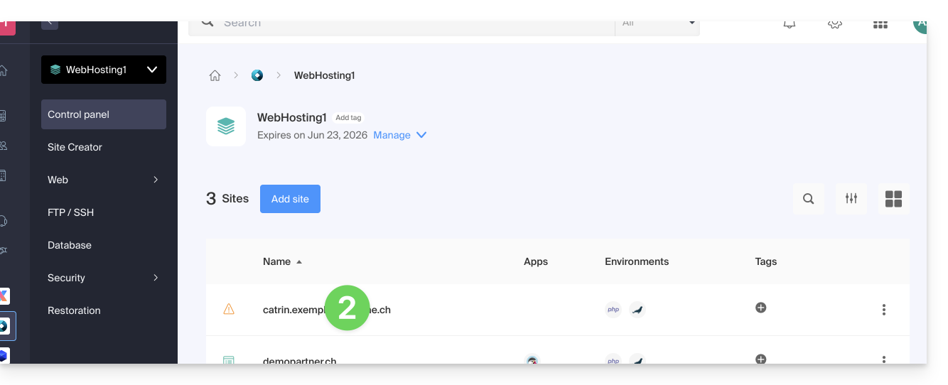 - Click on the button Add a site: