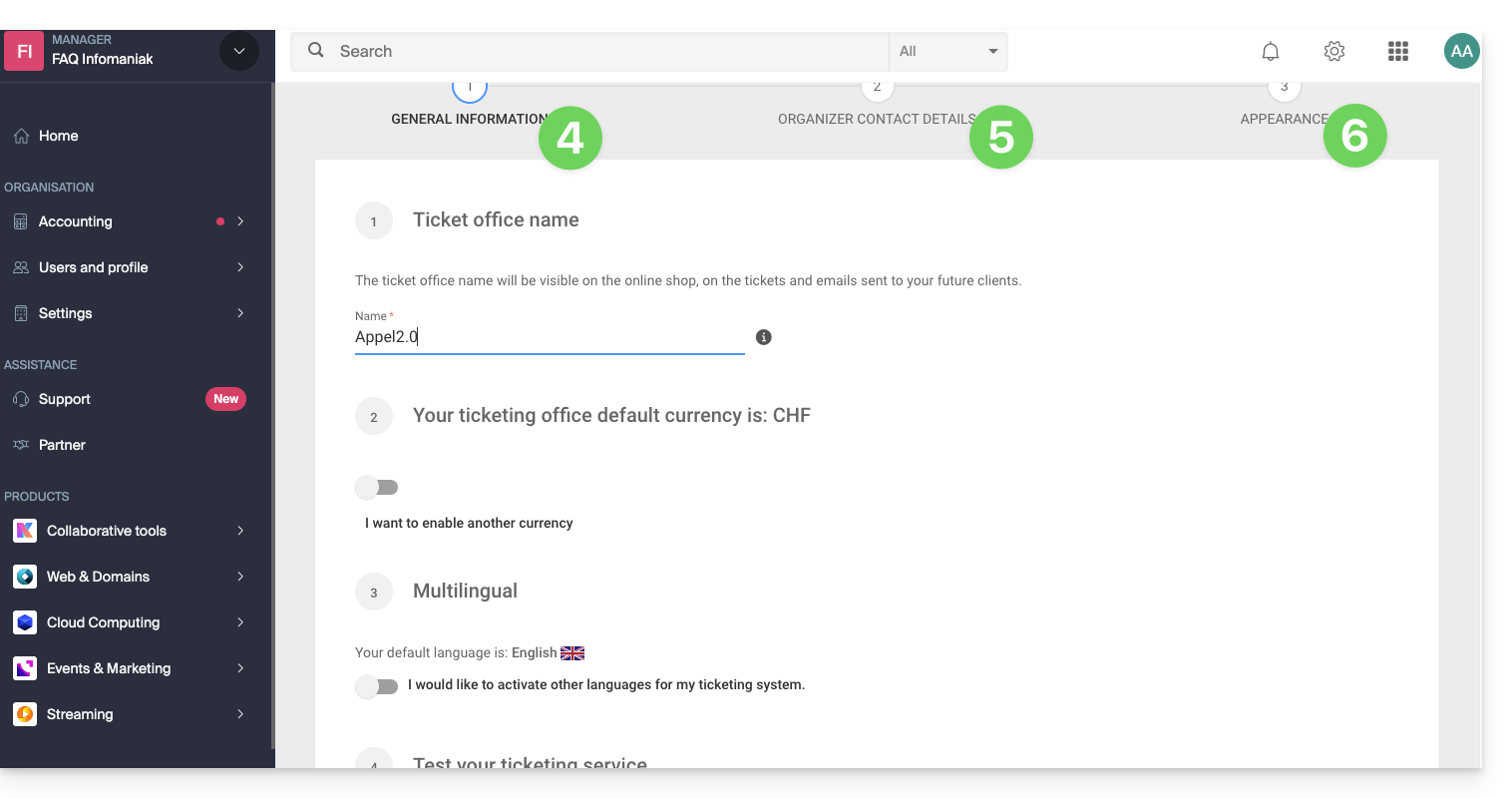 This guide explains how to exchange tickets at the ticket office (within the framework of the ticketing system Infomaniak).