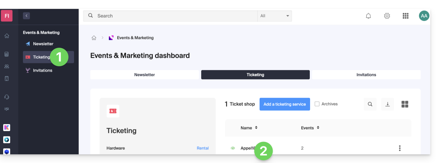 - Click directly on the name assigned to the ticketing concerned by the event.